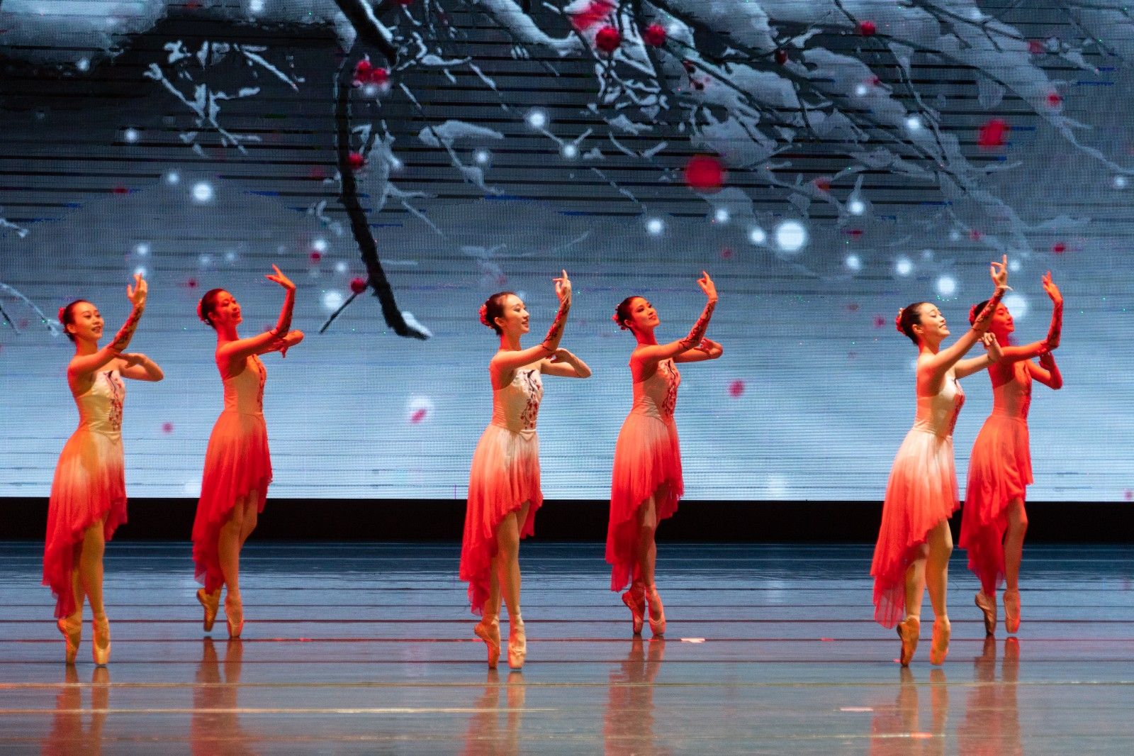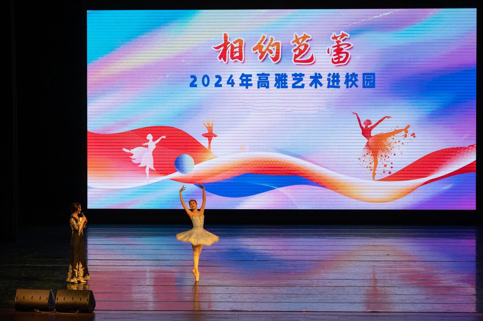 舞劇《百年紅梅頌》是由重慶芭蕾舞團演繹的芭蕾舞劇經典選段薈萃,共分為“流光溢彩”“乘風破浪”和“紅梅禮贊”三大篇章,以原創和編排經典芭蕾舞的形式,引領師生深刻領悟到中國共產黨百年來的光輝歷程和偉大業績,切實增強青年責任與擔當。演出還精心設置觀眾與舞蹈演員互動環節,讓師生們切實感受芭蕾舞蹈優雅獨特的藝術魅力。